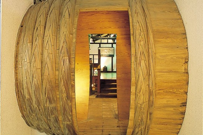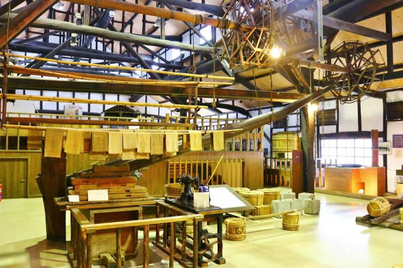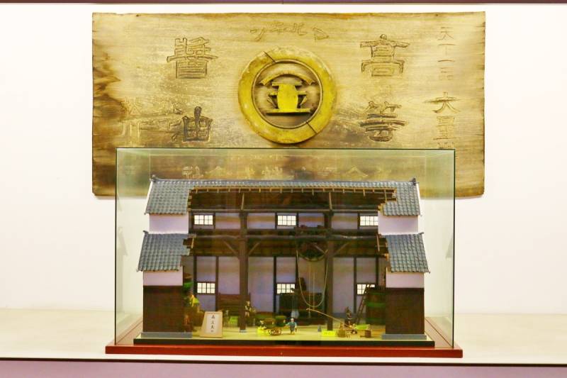 穿过曾经使用过的巨型大桶而制的「大桶(Ookoga)隧道」,方可进入展示古代工具的大厅。展示有榨取酱油的工具「棒挤式压榨机(Bojimesikiasakuki)」和麴室(Kojimuro)等可亲身感受酱油相关的物品。