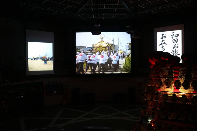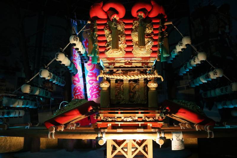 Inside, you will find pictures, drawings and audio materials explaining the history of the festival. There are exhibitions of the delicate carvings and other decorations of the Chosa with explanation of the traditional craftsmanship, along with the ‘happi’ coat worn at the festival and the ‘chochin’ lanterns that light up the festival.