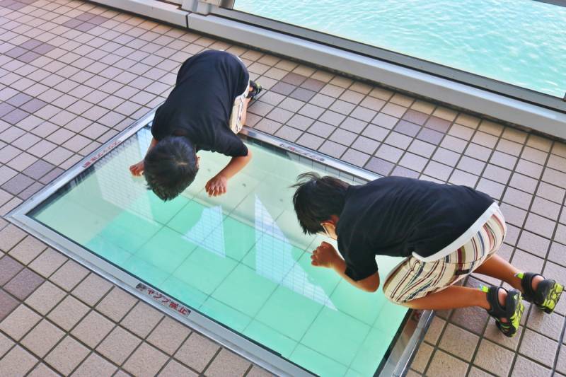 The Tokushima Prefecture Uzu-no-Michi is a great place for a comfortable view of the whirlpool. Through the glass floor of this structure, you can see the whirlpool 45 meters below. The whirlpool forms at high and low tide, so it is necessary to check the tide times in advance.
