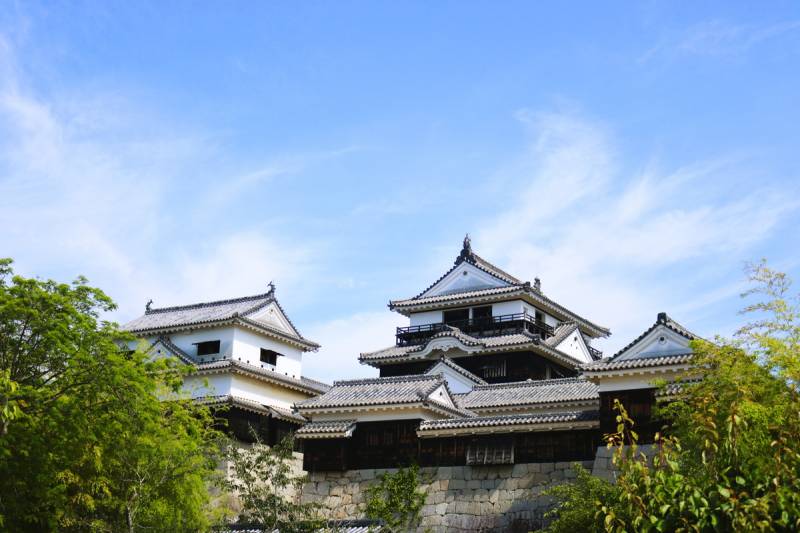松山城位于松山市中心,在日本仅存12座,有江户时代前建造的天守的城郭之一。(现存12座天守)。包含天守在内的21座现存建筑物被指定为国家重要文化财产。1602年开始筑城,至完成为止在我国筑城史上时间最久(四个半世纪)。「现存12座天守」中,与姫路城并列为连立式天守。1635年起始历经235年期间一直作为松山藩的大名-松平家的居住城堡。