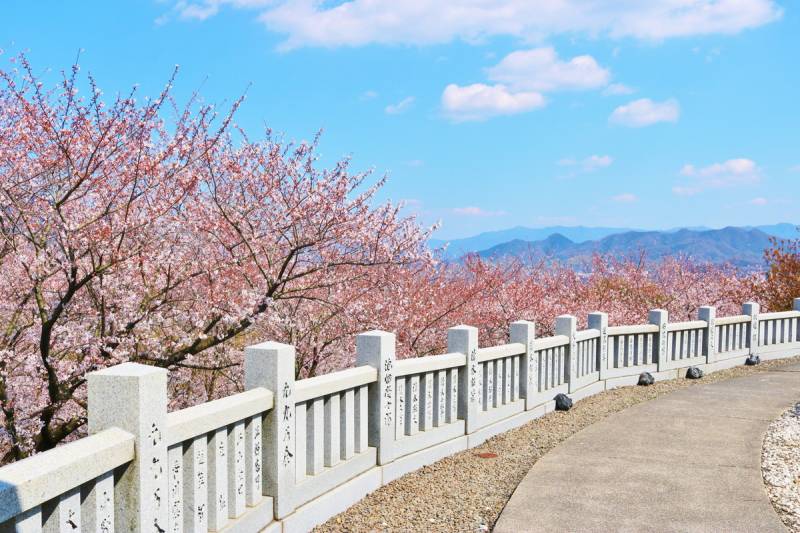 紫云出山位于香川县三丰市庄内半岛的海拔352米的山上。山顶的风景美得令人窒息,被美国《纽约时报》选为“有生之年必去一次!世界绝景 日本篇”。每逢春季樱花时节,为寻求樱花与濑户内海梦幻绝景的各国游客络绎不绝。另外,除了樱花季外,在初夏的绣球花之路,还可以欣赏到绚丽多姿盛开的绣球花。
