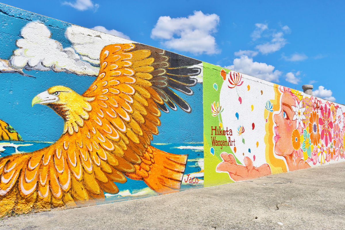 | 海岸艺术项目 | 东香川市引田渔港长堤防上画着以当时芝加哥美术馆附属大学的学生塞尔里亚·贝亚本(西班牙出身)的海洋生物(精灵)为主题的壁画,但由于受到风雨日照侵蚀,失色劣化。考虑到日久放弃不管不行,因此成立了“东香川市海湾艺术项目”。除了修复壁画之外,还邀请了县内外的艺术家,在海边景点作画。现在,各种富有梦幻色彩、现代风格、大胆创意之作装饰着这里的防波堤。 |